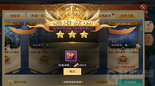 不仅如此,小编听说《百战天下》“洪荒古殿”还有传说中的橙色佩饰可以获得,副本的层数越高,掉落的概率就越高哦,道友们不妨来试试手气!除此之外,“洪荒古殿”还设置了一件扫荡功能,玩家之前通关过的三星关卡只需轻轻一点,便可瞬间获得所有奖励!真是即方便又贴心,有木有?