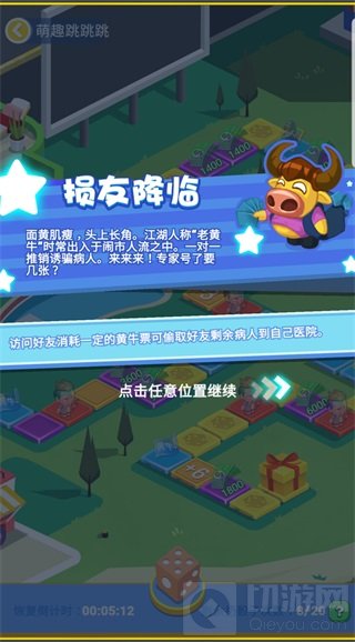 跳跳跳中的一些事件可以对其他玩家造成影响,例如黄牛票可以抢夺其他玩家的病人,而乔装卡则可以到其他玩家的医院中与护士小姐姐约会,以此获得丰厚的奖励。跳跳跳次数上限为20点,每十分钟自动恢复一点,大家可千万不要错过哦!