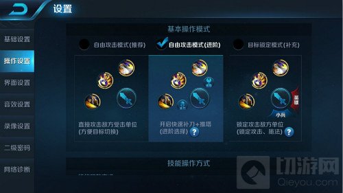 自由攻击模式是玩家最喜欢的操作模式,设置了之后,推塔补刀的时候非常实用,避免了想去打塔却是打在了敌方英雄身上致使自己被防御塔攻击。