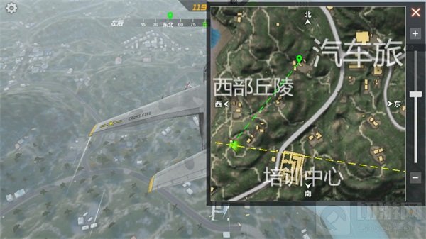 B、若小伙伴无心争斗,亦可通过载具向东北侧山区或绕过大型城镇向野外荒原推进。如此,或有机会无伤闯入决胜圈。