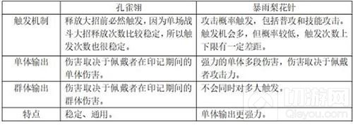 孔雀翎作为新的S级输出型暗器,和之前的输出暗器比较,有什么特点呢?以下为孔雀翎与暴雨梨花针对比: