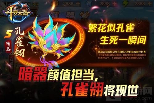 由唐家三少知名小说改编,100%遵循原著的微操动作手游《新斗罗大陆》自暗器系统上线后也引发了魂师们疯狂炼制“暗器”的风潮,更多“暗器高手”们觉得目前暗器种类较少,意犹未尽,10月16日,五大暗器之一的孔雀翎将现身,一场更激烈的腥风血雨即将拉开序幕。