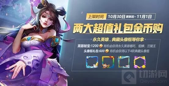两大金币礼包上架,消耗金币抽3位永久英雄和4款头像框。
