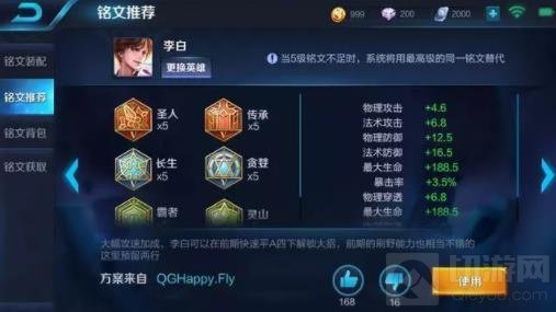 4、铭文系统新增一键配置,不知道如何搭配铭文的玩家,可以通过系统推荐的大神铭文配置,直接复制过来,这样不仅省时省力还省心。(以下为示意图,铭文搭配不可照搬,李白可不带圣人)