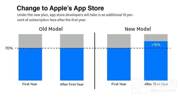 订阅类APP第一年分成30:70 第二年15:85