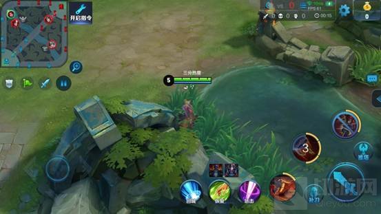 一般如果敌人有人在右侧草丛给蹲视野,通过上一条所说的正常游走路线,很难游走成功,不过这个情况下,敌人一般都会压塔,会有攻击塔的意图,我们可以反蹲在如GIF图中的草丛里,等敌人到达攻击范围内后出来击杀!这种方法比较适合敌人压线过前,是一种反蹲的技巧,需要注意在时机未成熟时不要暴露视野,也可以利用残血英雄勾引对面越塔。