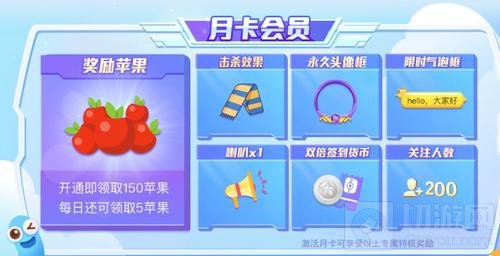 小编分析:周卡会员6元,月卡会员30元,月卡会员领取的福利确实比周卡会员要多很多,比较有实用价值的苹果自然是月卡会员得到的更多,而且月卡会员还有气泡对话框、击杀效果等,所以个人认为如果经济条件允许,那还是选择月卡会员吧。