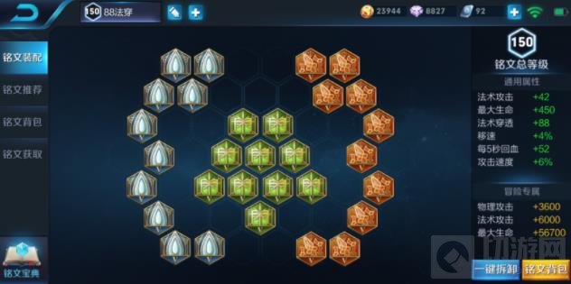 常见的ap铭文搭配,几乎所有的法术伤害英雄都可以用这套铭文。同样蓝色铭文可以选择狩猎、调或者贪婪,新手玩家一套百穿一套88法穿铭文基本可以应对所有对局,之后再升级其他铭文。