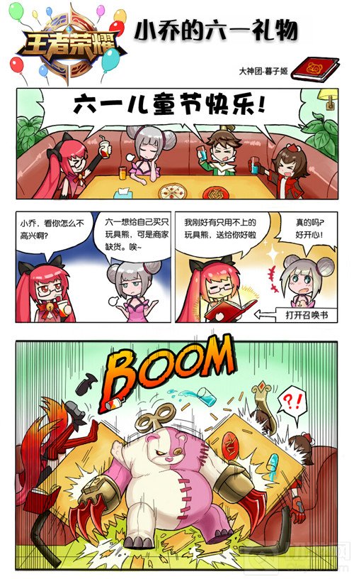 六一到了,小乔却没给自己买到六一礼物。就在这时热心的安琪拉决定把用不上了的玩具熊送给小乔做礼物,但是她召唤时好像忘记了场合......这下可坏了。
