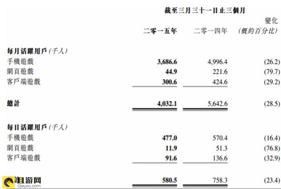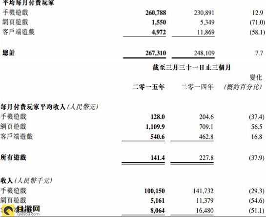 蓝港互动的游戏注册玩家总数从2014年3月31日的1.46亿上升至2015年3月31日超过1.87亿名,其中手机游戏的活跃玩家远远超过客户端游戏及网页游戏。