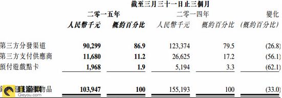 按照收入贡献计,第三方分发渠道仍是蓝港互动最大类型的收款渠道,与2014年第一季度相比,占总收入比重从约79.5%上升至86.9%。通过第三方支付供应商和预付游戏点卡收入产生的收入佔总收入比重出现下滑,约占2015年第一季度游戏虚拟物品销售所产生收入的11.2%和1.9%,相较2014第一季度约为17.2%和3.3%,这种变化与玩家付费偏好的变化保持一致。