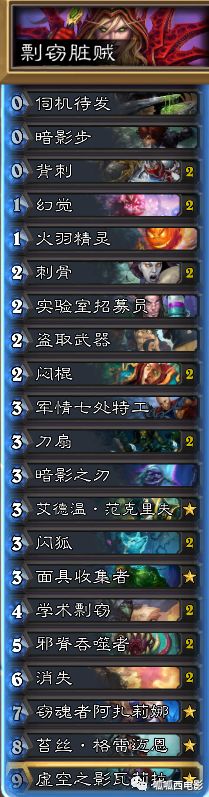 说明:盗贼整天和牧师比脏,一个脏职业卡牌,一个脏卡组卡牌。这套牌也脏,而且是超级脏,利用对面的卡牌,打出各种不一样的combo。娱乐性超级高,实战的话随从也较多,质量也不错,保证可以玩得开心。