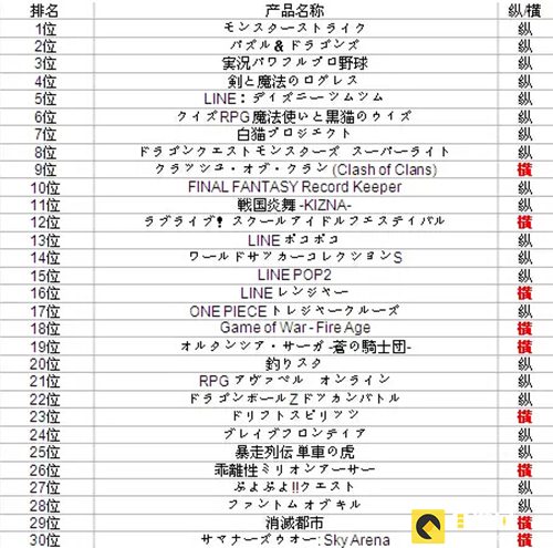日本AppStore游戏类畅销榜TOP1~30