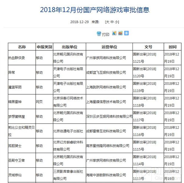 在海南省海口市举办的2018年度中国游戏产业年会上,中宣部出版局副局长冯士新表示,首批的、部分的游戏已经完成了审核,正在核发版号。今天国家新闻出版广电总局官网公开了12月国产网络游戏审批信息,一起来了解一下。
