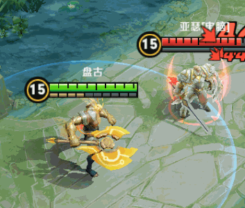 盘古的斧头具有耐久度,每次普攻命中敌人都会消耗耐久度,消耗完后斧头会破碎变成两只能量臂出现在盘古的身体两侧。使用斧头攻击敌人时,每次普攻附带流血效果。使用能量臂攻击敌人时,每次普攻可叠加1层眩晕标记,满5层会使敌人眩晕。斧头碎裂后,普攻&技能伤害都会降低,但冷却时间会缩短。
