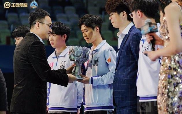 腾讯互娱移动电竞业务部总经理、综合市场部电竞中心负责人,KPL联盟主席张易加为FMVP获得者久诚颁发奖杯。