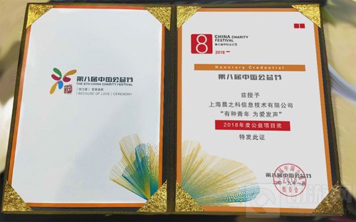 1月14-15日,第八届中国公益节在北京举行,本届公益节以“公益创造美好”为主题,传递向上、向善的力量,让更多人建立起关注和参与公益的态度,共同助力中国公益事业新发展。晨之科一直积极参与公益活动,传递公益力量,在此次公益节中荣获“2018年度绿色典范奖”及“2018年度公益项目奖”两个奖项。