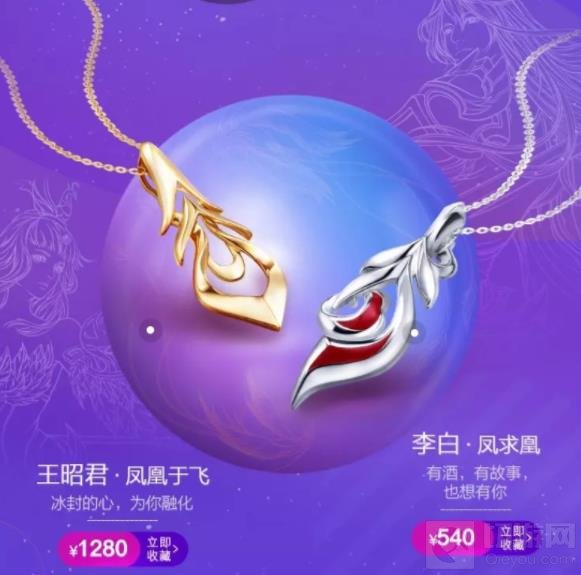 根据介绍,本次《王者荣耀》将与周生生联手,以李白、王昭君、梦奇、妲己、庄周等英雄为主题推出5款饰品。在这其中,“李白·凤求凰”银饰定价540元,“王昭君·凤凰于飞”定价1280元。