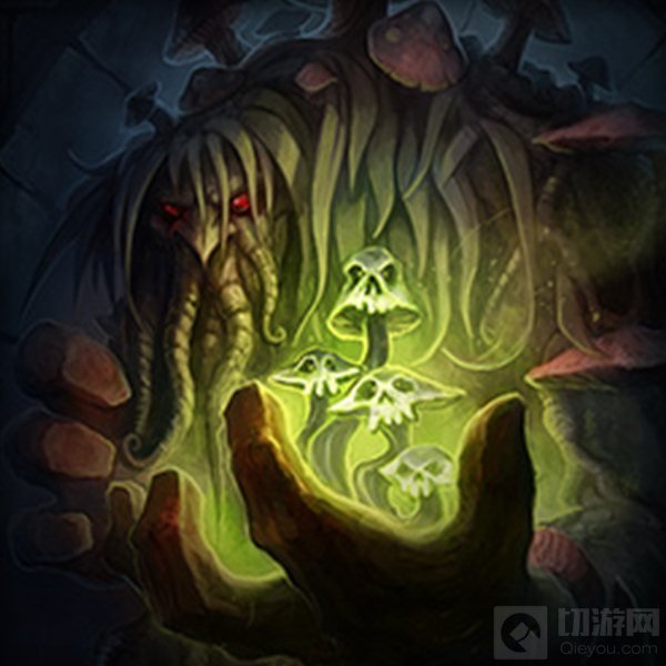 有着非常强大的低费卡:2费杀掉一名随从之类(貌似),但这会让他获得一张有亡语的0/1的孢子。亡语效果为 — 使对手的生物获得攻击力+8。