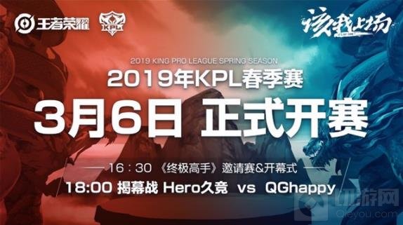 王者荣耀2019KPL王者荣耀职业联赛春季赛(以下简称2019KPL春季赛)将于3月6日在成都量子光电竞中心正式开赛。《终极高手》KPL邀请赛(由节目最后胜出的冠军队伍对阵YTG战队)及春季赛开幕式将在16:30开启。揭幕战将于18:00打响,由Hero久竞对阵QGhappy。备受期待的新赛季赛程将于明日揭晓。新赛制,新战队,全新征程,该我上场!