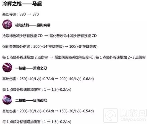 马超削弱:整体伤害降低,移速增幅的伤害提高,操作难度变高。