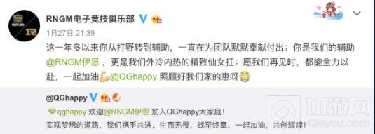 RNGM的辅助伊恩转会至QGhappy,先说RNGM教练Helios在年初时和粉丝互动所说到的两点重要信息。