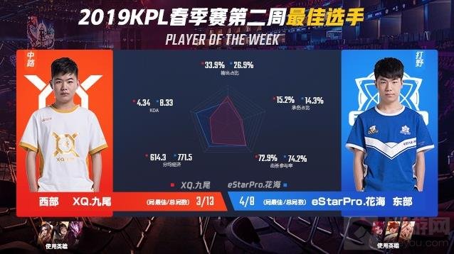 2019年KPL春季赛常规赛第二周赛事完结。西部赛区RW侠、WE保持三战全胜战绩;东部赛区双“E”兄弟:EDG.M与eStarPro积分及净胜局相同并列第一。从东西部赛区整体成绩和交战战绩来看,西部赛区在本周保持“雄起”姿态。