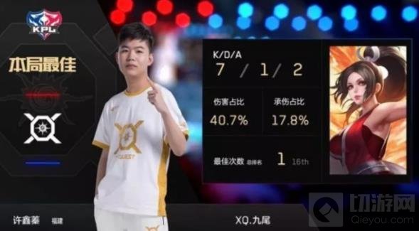 在上周表现最为亮眼的选手肯定就要提到这名XQ新人九尾了,在Hero久竞二比零领先XQ之时,玩家们都认为XQ的新人实力不行啊,结果后面强势的打了一波脸,后续的三把中单诸葛亮、不知火舞、上官婉儿法刺三连秀。艰难的让二追三获得了胜利!