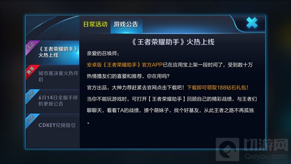 官方出品,大神力荐赶紧去官网点击下载吧!下载即可领取188钻石礼包!答你不能玩游戏时打开《王者荣耀助手》回顾自己的精彩战机,与王者们聊聊天,看看TA的战机撩个妹子,找个好基友,从此王者之路不再孤单。