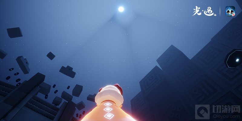 在光明的守护下,无需畏惧黑暗。幽暗的地道在眼前延展,终点仿佛遥不可及。小心前行,黑暗终于被玩家们抛在身后——石壁上是神秘古老引人深究的图案、幽蓝流火瀑布上如缀满了晶莹夺目的钻石;点点星火如暗夜精灵,又如玩家在旅途中留下的闪亮回忆,汇聚成了熠熠绚烂的星海;漂浮的石台缓慢旋转着,仿佛在邀请着玩家们踏足,在等待着玩家们造访。在这一片神圣静谧的天地里,不妨勇敢地飞出石台,飞向深渊——在满目星光的陪伴下,无所畏惧。