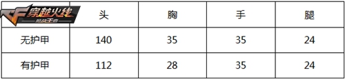 胸部伤害x4即为头部伤害,打中护甲的伤害须在此基础上另外x0.8 。