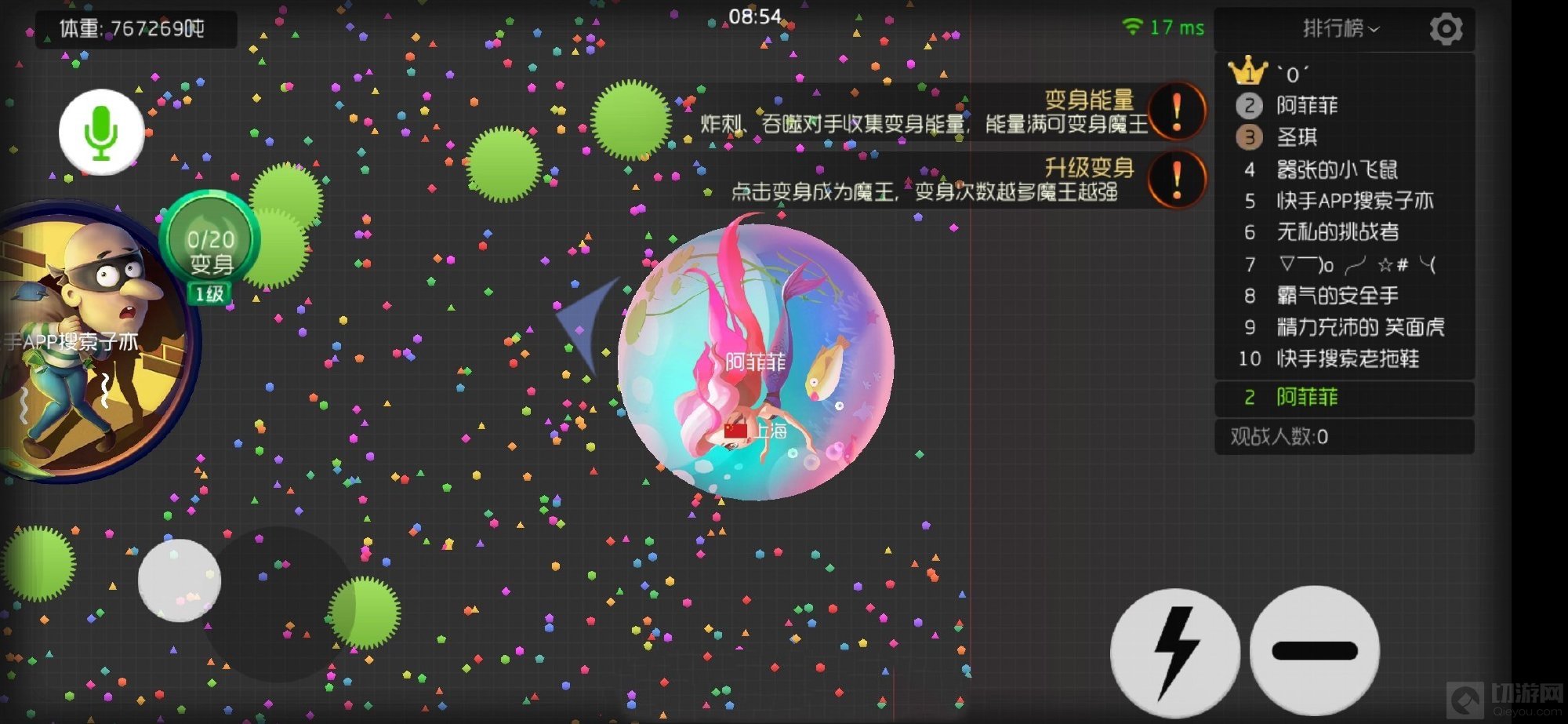 首先从时间入手,如果这一局是18+的正常可以上排行,但人都有好胜心那怎样才可以排行靠前呢?刚开始你就要赶紧吃小点点,吃点点最快速度是沿着一条直线吃,如果你刚好在一个很多小点点的地方那么你就赚了因为这些对于你都是快速成长的营养。