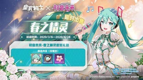 本次版本更新除了给各位骑士大人,带来了初音未来的“春之精灵”新皮肤,同样还有各种专属活动。3月份,雪韵公主将会全新上线,各位小伙伴们可以与之缔结契约啦~