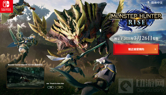 《怪物猎人:崛起》2021年3月26日在任天堂Switch平台发售。