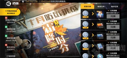 在“十月贴纸挑战”活动中,玩家通过完成任务积累挑战币,消耗挑战币即可兑换活动奖励。奖励包括“永久贴纸-天才少年·霜降时分”、“副本挑战券”、“熟练度加速卡”、“复活币”、“钻石”、“战备物资自选包”等。该活动将于11月4日24点结束。