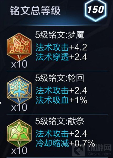 铭文的话,推荐法师通用铭文,红色10梦魇,蓝色10轮回,绿色10献祭