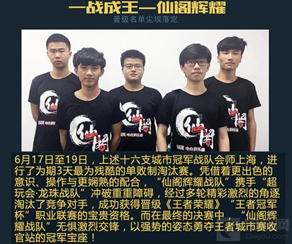 王者荣耀官方倾力打造的2016王者城市赛晋级赛于6月19日在上海圆满落幕。来自郑州站的仙阁辉耀战队和广州站的超玩会·龙珠战队凭借自身更为出色的实力,从16支城市冠军战队中脱颖而出,成功获得晋级《王者荣耀》“王者冠军杯”职业联赛的宝贵资格!下面,让切游小编带着大家一起来回顾一下吧。