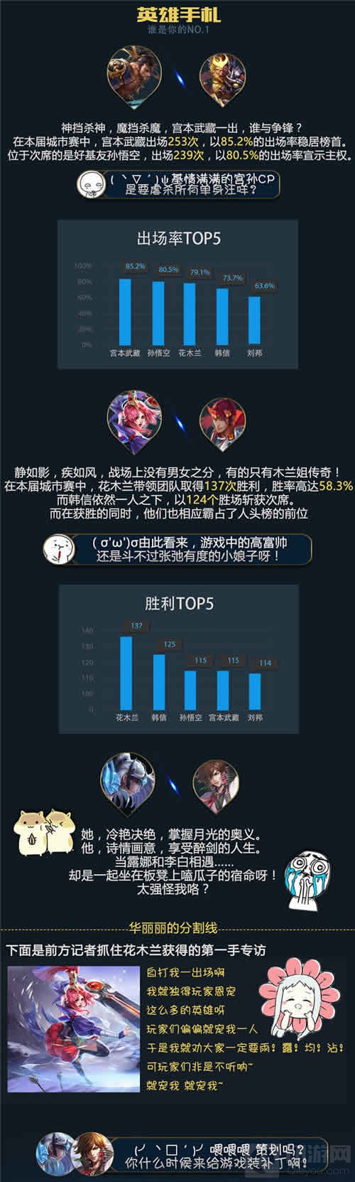在16个城市赛选拔赛以及3日城市赛晋级赛中,那些令我们喜爱不已的王牌英雄也不止一次地为玩家们制造惊喜。谁会是城市赛的常胜将军?谁又铁面无私稳坐助攻王?让我们一起来为英雄喝彩!