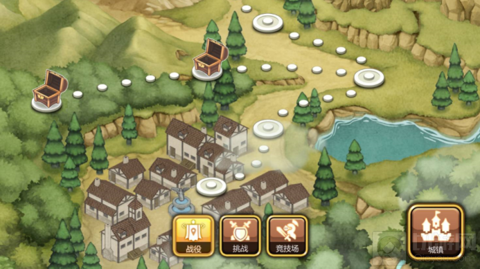 游戏的战役场景在一片青山绿水中。场景中的道路与据点原为灰色,通关后会变为高亮,通过部分关卡后可以开启支线宝箱关卡。玩家在通关和获得关卡奖励后能收获满满的成就感。但是所有关卡奖励都只能获得一次,且宝箱关卡需于战役场景中手动点击宝箱领取。