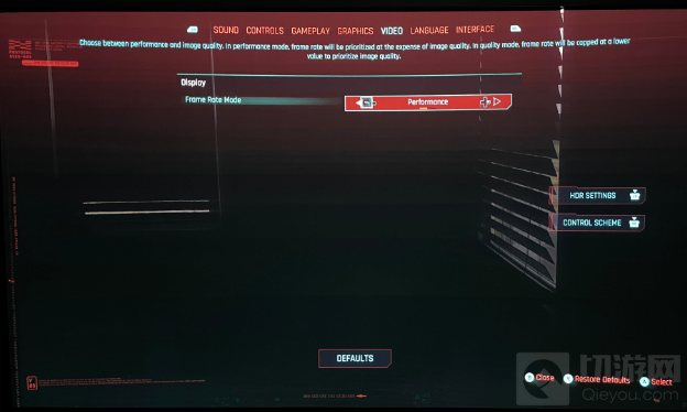 《赛博朋克2077》即将正式发售,国外一些玩家已提前拿到游戏。近日国外玩家DanXcel就在Reddit论坛上晒出《赛博朋克2077》XboxOne版截图。他表示《赛博朋克2077》包含性能模式和画质模式选项,性能模式能让游戏运行更流畅,画质模式则让游戏画面更绚丽。