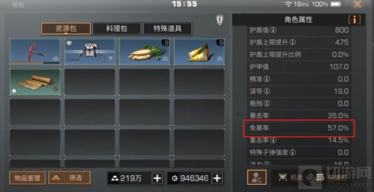 免暴率指减少敌方对玩家自身攻击产生暴击的几率,玩家可以在背包-角色属性中查看当前角色免暴率。