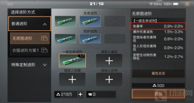 生命试剂可以提升免暴率,试剂等级越高,生成的免暴率属性就越高。