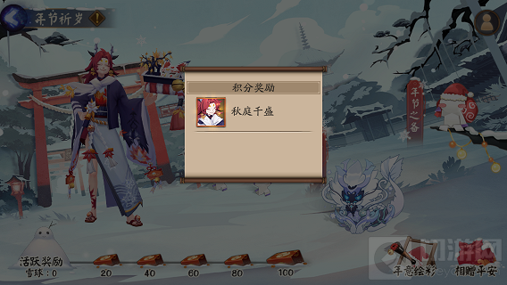 活动期间,大人们参加'年节祈岁'活动,即可获得活动道具'雪球'。累积指定数量的'雪球',即可获得插画券、神秘的符咒、皮肤券、活动专属动态头像框'年节祈岁'和星熊童子皮肤'秋庭千盛'。