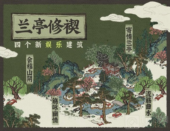 可建造的娱乐建筑新增4款:「会稽山阴」、「觞咏幽情」、「流觞曲水」、「寄情兰亭」。