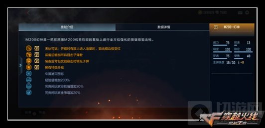 小结:M200-幻神的穿透力在原版的基础上一升再升(原版M200穿透力为60%,青花瓷为70%),不过即便穿透力达到了75%,M200-幻神依然无法一枪穿死敌人。和伤害的提升一样,这样的加强无关痛痒,面对残血敌人也许能发挥一定作用。
