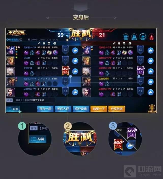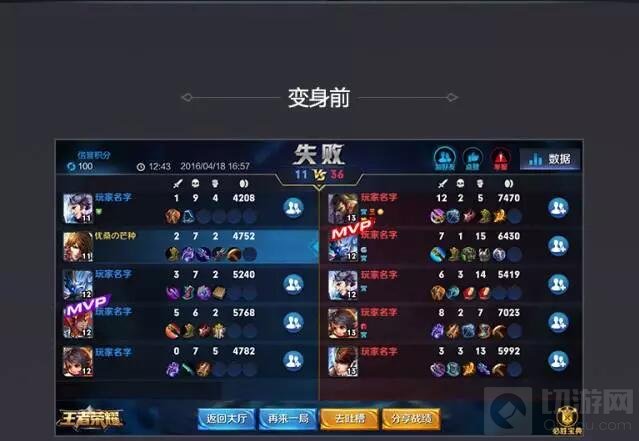 3.MVP的展示位置右移并增加评分,谁最给力,谁该背锅一目了然。
