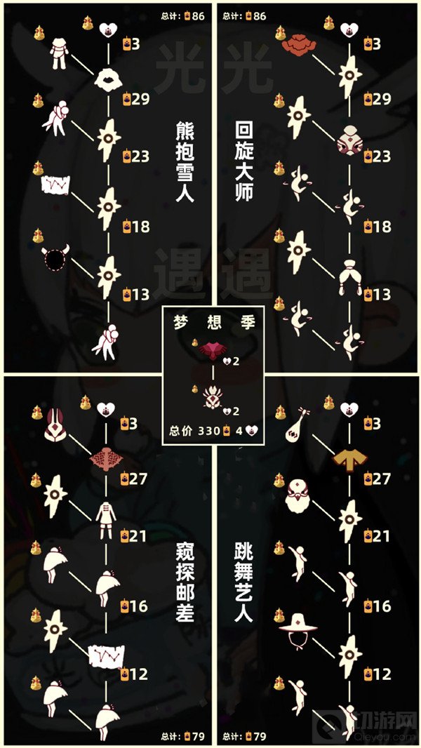 光遇梦想季兑换物品有哪些?在光遇的游戏中,梦想季将于今天下午在国际服开启,这次的兑换物品资源非常丰富,一共有四位先祖可以前往兑换不同的物品,接下来小编就为大家带来光遇梦想季的兑换物品大全吧。