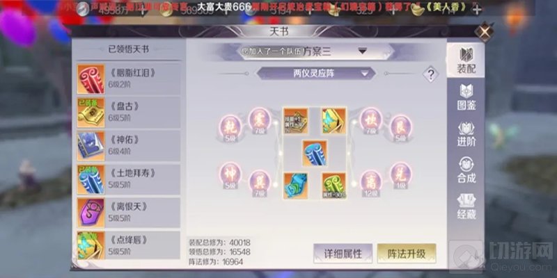 楼主的天书还是比较平民化的,因此把性价比最高的天书搭配分享一下。1)伤害流:盘古+点绛唇/鹏程+玫瑰刺+如沐春风+土地拜寿/临江仙 这套带法是打本标配了,猎魔高的可以把土地换成临江仙,撑满猎魔百分比收益非常高(适合有玄武或者对自己操作有信心的刺客)