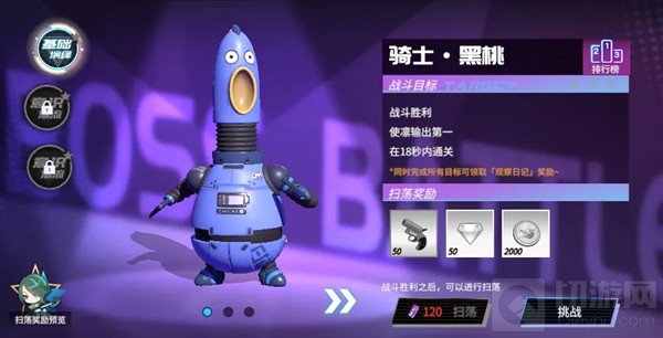※活动说明:挑战胜利后,可解锁关卡的扫荡。消耗「罐状解码装置」进行扫荡可以获得「信号收发器」和成长资源。