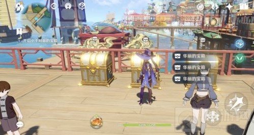 除了完成任务可以获取的原石和素材奖励,玩家还可以打开小千所在位置的三个大宝箱。